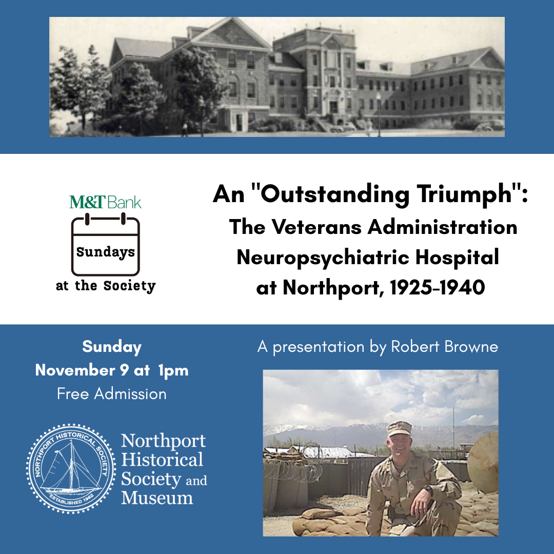 The US Veterans Bureau began building veterans’ hospitals across the country in 1920, an unprecedented health care delivery system for that time. The land for the VA Hospital in Northport was purchased in August of 1925, with 2025 marking the 100 year anniversary of that momentous acquisition. At this talk, researcher and veteran Robert K. Browne will highlight the unique first (and mostly forgotten) era of the hospital, and remind us of the sacrifices we honor on Veterans Day.