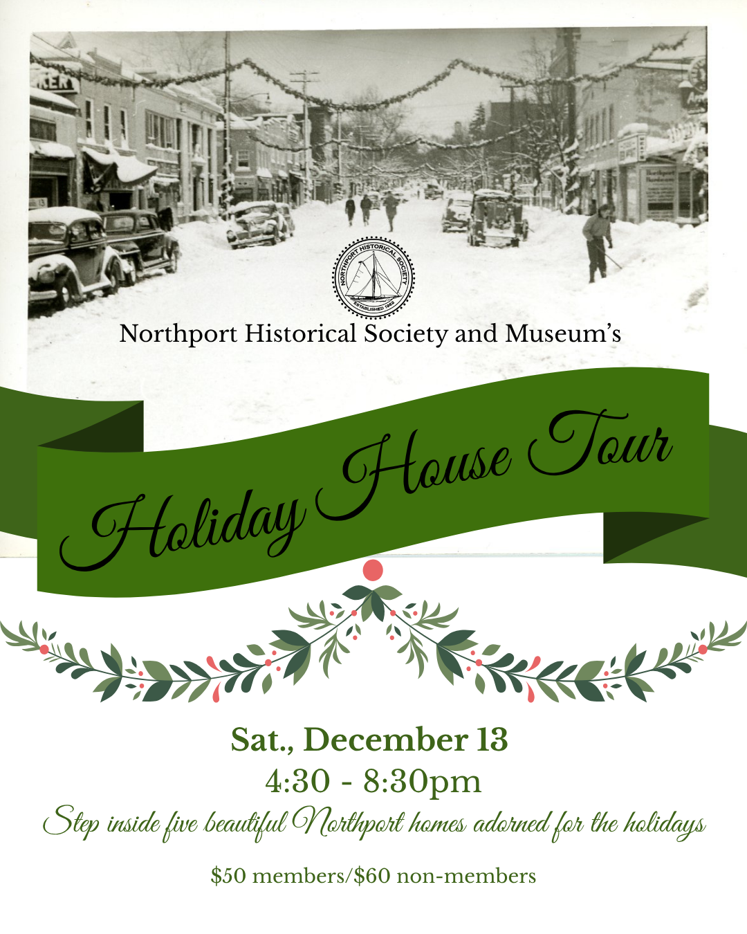 The Northport Historical Society and Museum’s popular Holiday House Tour is back! Five charmingly decorated Northport homes will be open to guests of the Society for one night only. This year we will include a number of historic homes that show off Northport’s unique character.