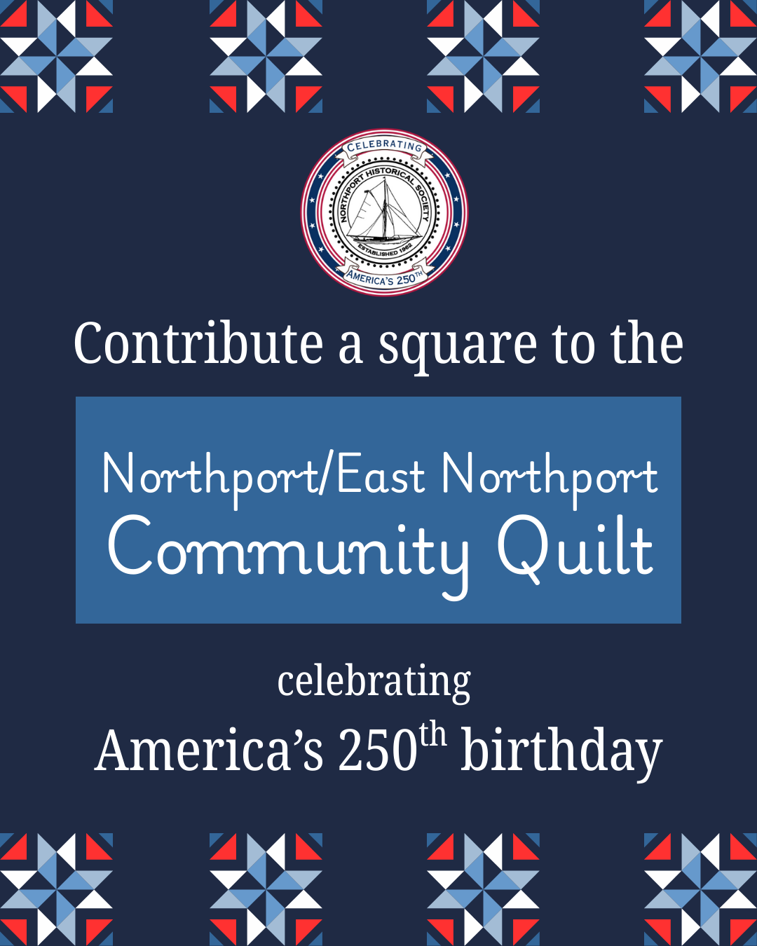 We are so excited to be celebrating America's 250th with our community. Check back often to keep track of all the events, special content, and merchandise that The Northport Historical Society and Museum, Huntington Historical Society, The Town of Huntington, The Village of Northport, and other local museums and groups have planned for 2026.